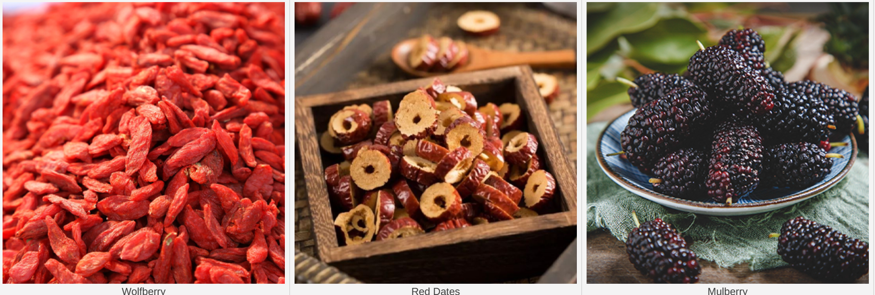 Ingredients: Mulberry root, Goji berries, Ginseng, Maca, Jujube